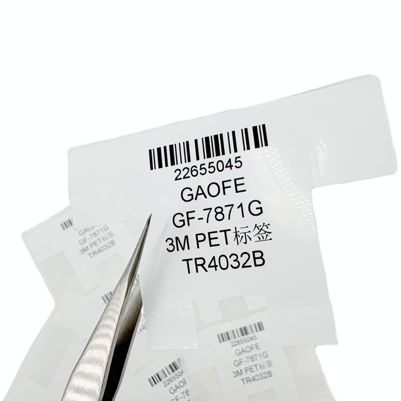 The GF-7871 polyester asset ID label is a premium, high-gloss label featuring strong adhesion for a smooth, bubble-free fit. Its durable, solvent-resistant print surface ensures permanent, clear identification that withstands harsh cleaning and industrial environments.